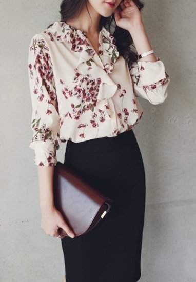 ドレープ花柄フラワープリントエレガントオフィス通勤きちんと感809
