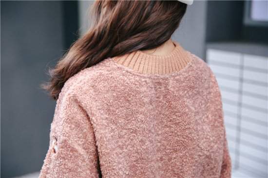 オルチャン韓国トレンド 冬物 売れ筋 ニット ボア クルーネック 花柄 ガーリー カジュアル ゆったりボリュームスリーブ250