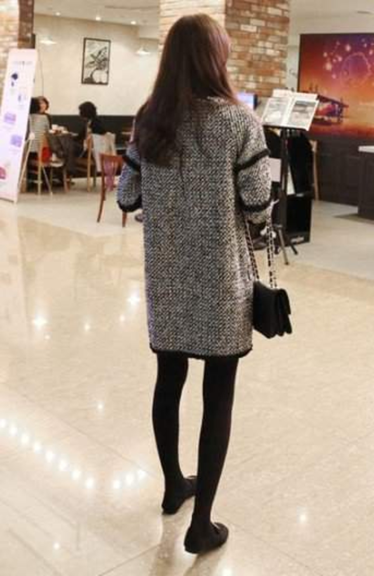 ツイード 膝丈 ビジュー グレー 七分袖 カジュアル フリンジ 入学式 入園式 参観日に◎731
