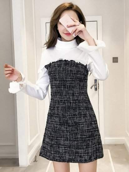 タイトセットアップ モノトーンツイードショートタイトタートルネックエレガント236