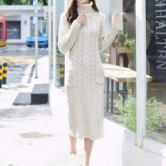 オルチャン韓国ニット ロング ニットケーブル編み ニット ゆったり288