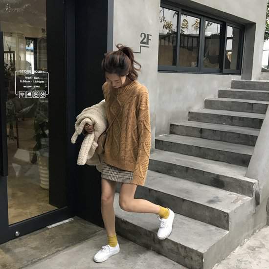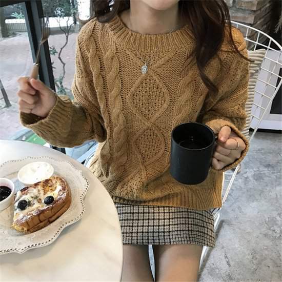 オルチャン韓国冬物 人気ニット ケーブル編み ケーブルゆったりトレンド カジュアル オフィス 女子会デート 806