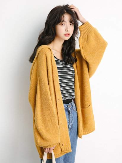 オルチャン韓国冬 オススメ 新作 ニットカーディガン ゆるニットポケットフード付き ドロップショルダー カジュアル シンプル ロング丈492
