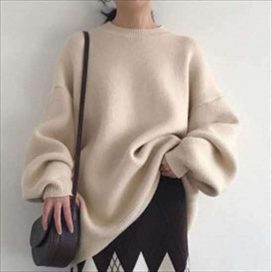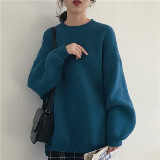 オルチャン韓国おすすめ 人気ニット プルオーバー ゆったり オーバーサイズ ラウンドネック ドロップショルダーフェミニン シンプル854