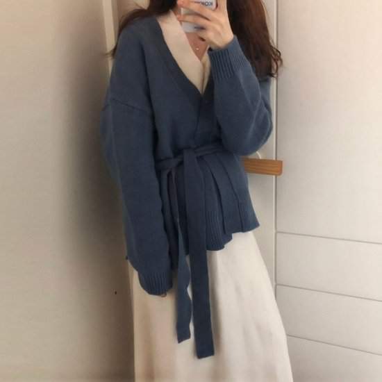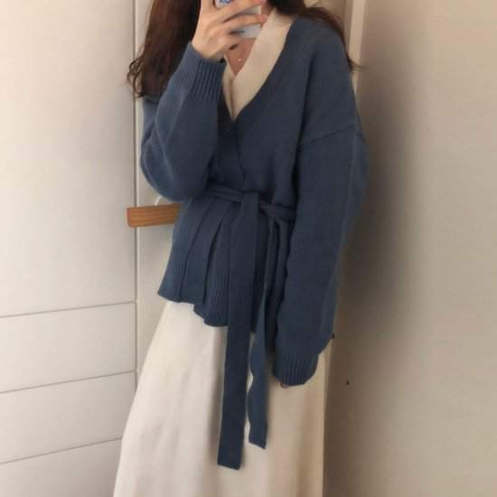 オルチャン韓国トレンド売れ筋 おすすめ ニット カーディガンボタンレス ドロップショルダー ショート丈 リボン645