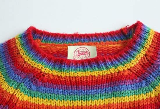 オルチャン韓国おすすめ 人気 売れ筋 ニットクルーネック ボーダー マルチカラー ポップ カジュアル ゆったり 秋冬171