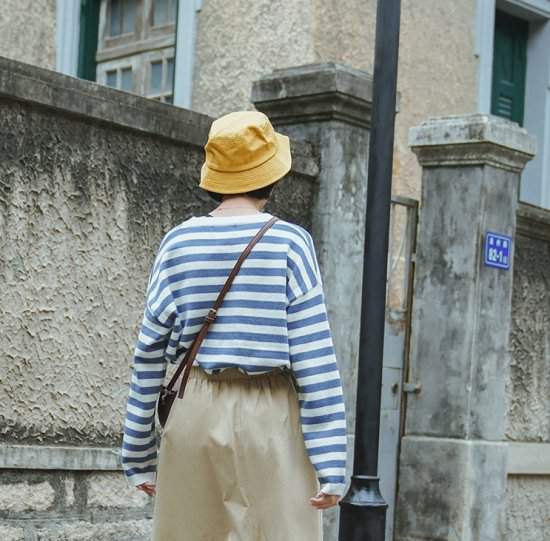 オルチャン韓国 春物 ニットボーダー クルーネックドロップショルダー ゆったり カジュアル ガーリー 定番777