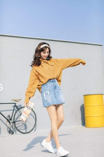 おすすめ 春物トレンド 人気 売れ筋ギンガムチェック柄 リボン ガーリー カジュアル 77