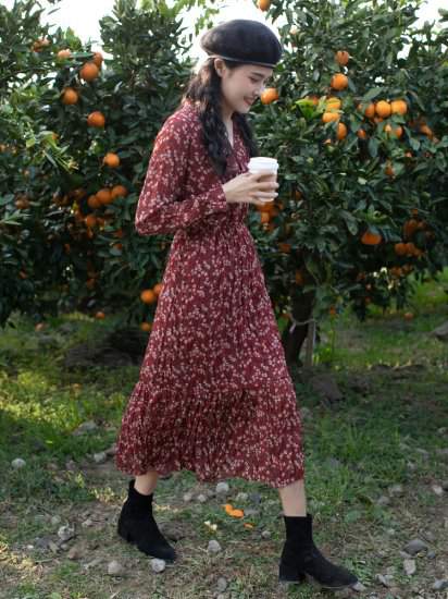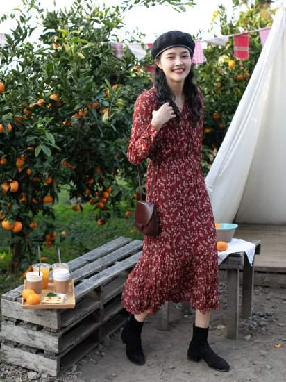 おすすめ 春物Vネック ひざ下 花柄キレイ女子会 デート カジュアル145