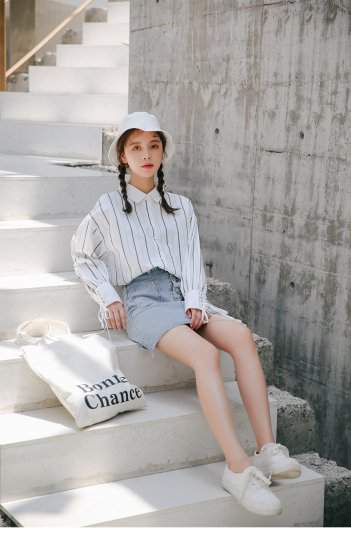 トレンド 春物 新作ストライプドロップショルダー ゆったり 編み上げ レースアップ トレンド カジュアル ガーリー148
