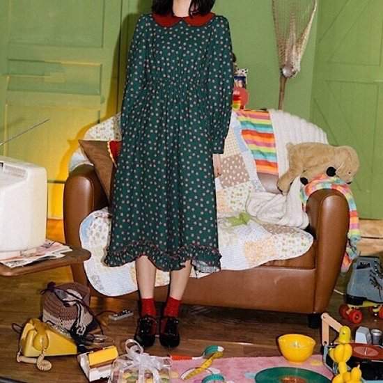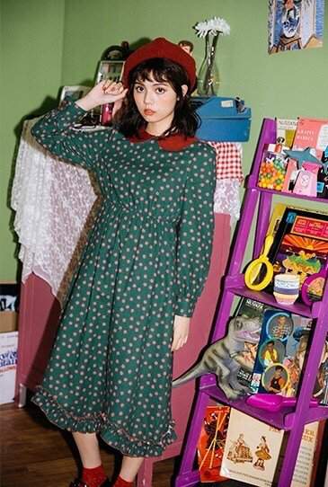 冬物 レデイース 膝下丈 襟付き 花柄ハイウエスト デート フリル きれいめ638