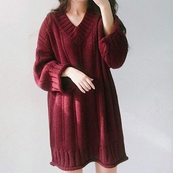 オルチャン韓国人気 秋冬 Vネック ニット ミニチュニックゆったり女子会デート 通学 カジュアル 537