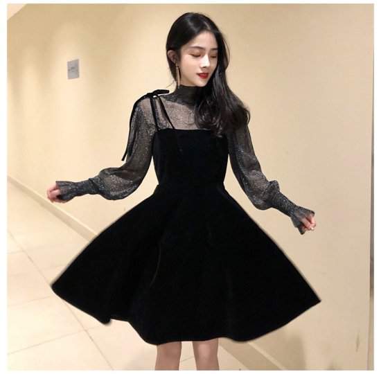 ドレスフレア ミニ丈 シースルー ボトルネック 袖コンシャス 上品 きれいめ 可愛い 960