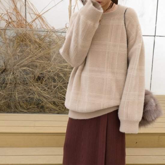 オルチャン韓国おすすめ 冬物 ニットUネック チェック こなれ感 女子会 デート 通学 シンプル ふわふわ キュート164