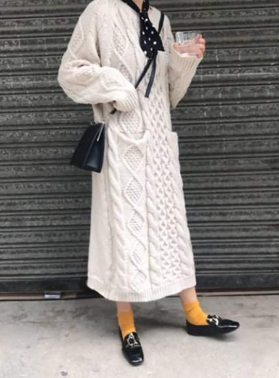 かわいい オルチャン韓国ニット ロング ニット ケーブルニットケーブル編み ニット ゆったり 175