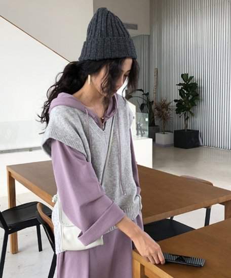 オルチャン韓国おすすめ 冬物 ベスト ニットゆったり こなれ感 くすみ色 カジュアル オフィス キャンパス 通勤 Vネック43