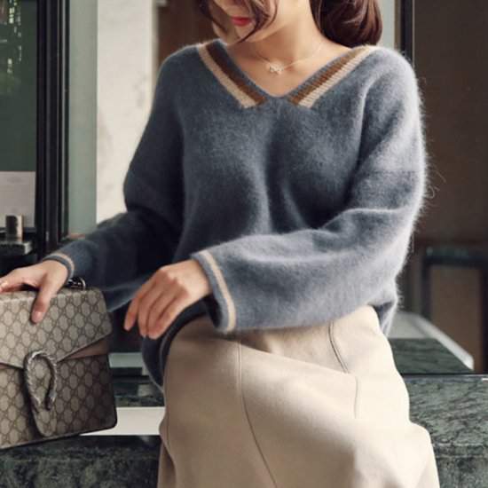 オルチャン韓国冬 トレンド ニットモヘア 両Vネック ライン ゆったりトレンド 上品 カジュアル720