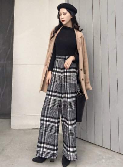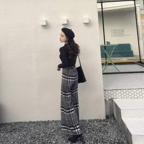 売れ筋 おすすめロング丈 ワイド チェック柄 カジュアル オフィス 通勤 キャンパス ハイウエスト528