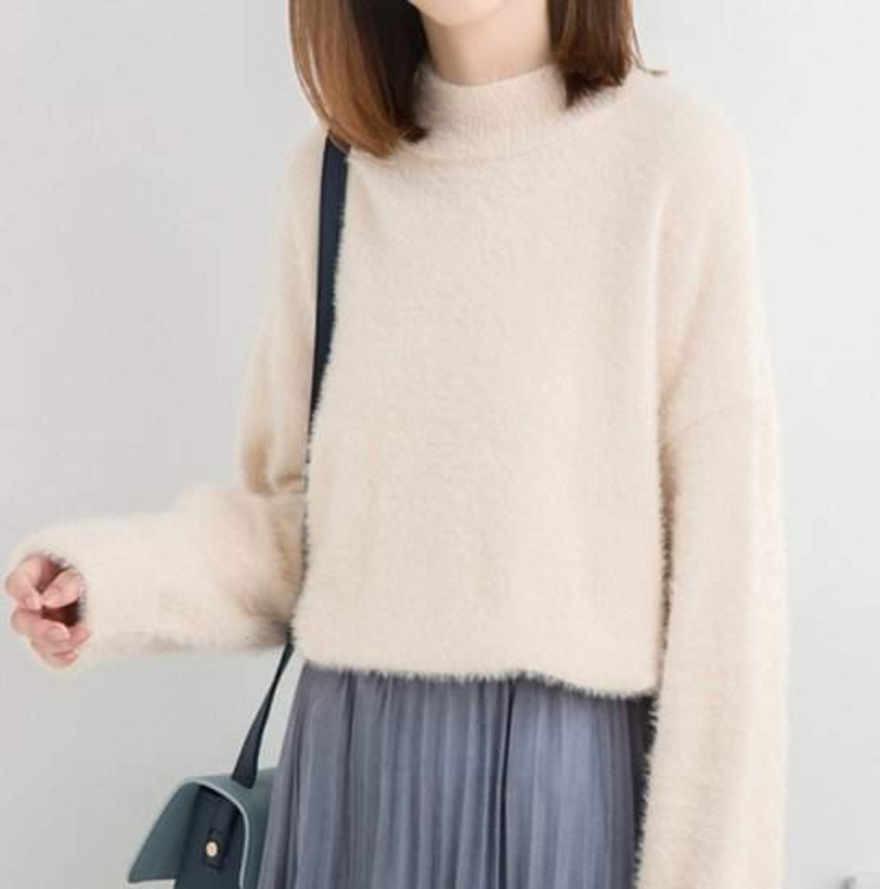 オルチャン韓国レデイースニット カジュアル きれいめ シンプル パフ袖 ハイネック 秋冬 オフィス 通勤 キャンパス182