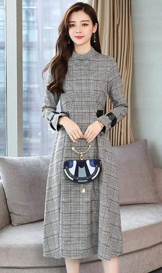 チェック柄ハイネックグレンチェックAラインデティールミモレ137