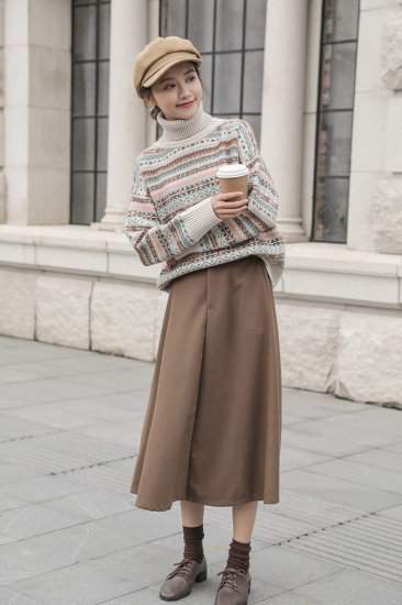 オススメ 人気冬ハイネック タートルネック ルーズタートル ノルディック柄 柄物 エレガントルーズ 普段着269