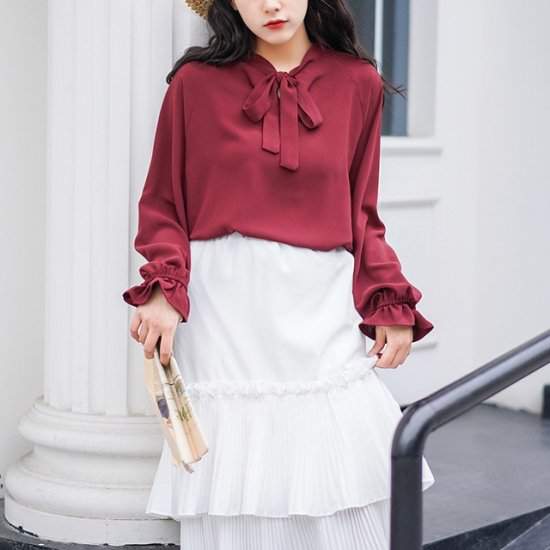 おすすめ トレンド 袖フリル リボンゆったりベーシック シンプル ガーリー905