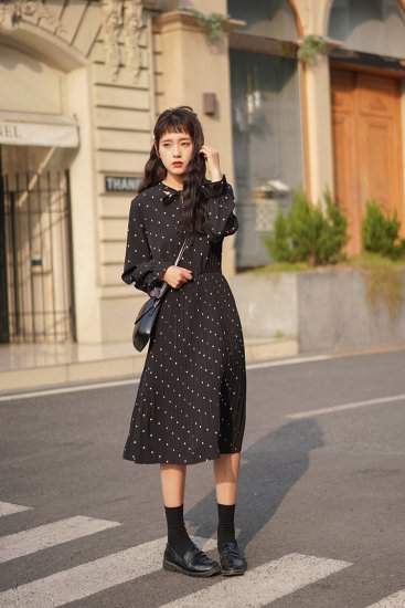 おすすめ 新作 春物水玉 ドット ミディアム丈 プリーツ 女子会 デート 通学 カジュアル593