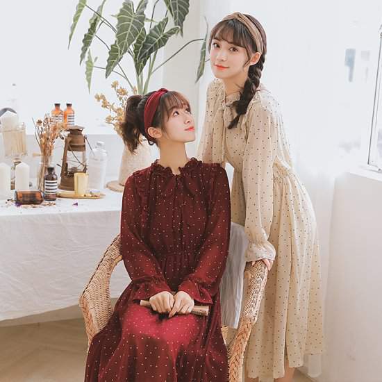 売れ筋 春物ミディアム丈 フリル リボン 水玉 ドット ガーリー甘い デート555