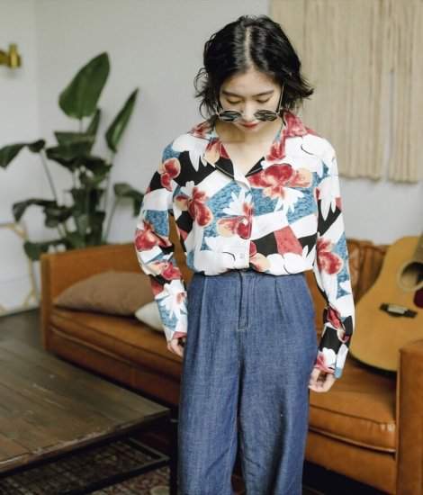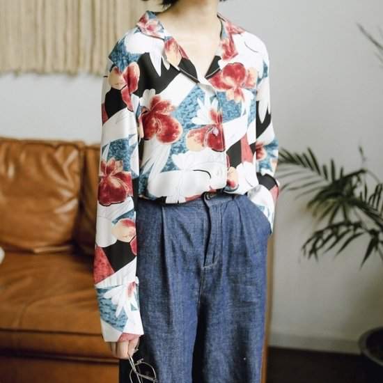 春物 人気シフォン 花柄 大柄 襟付き キレイめ136