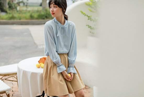 おすすめ 春物シフォン スタンドカラー ベルスリーブ 刺繍 清楚705