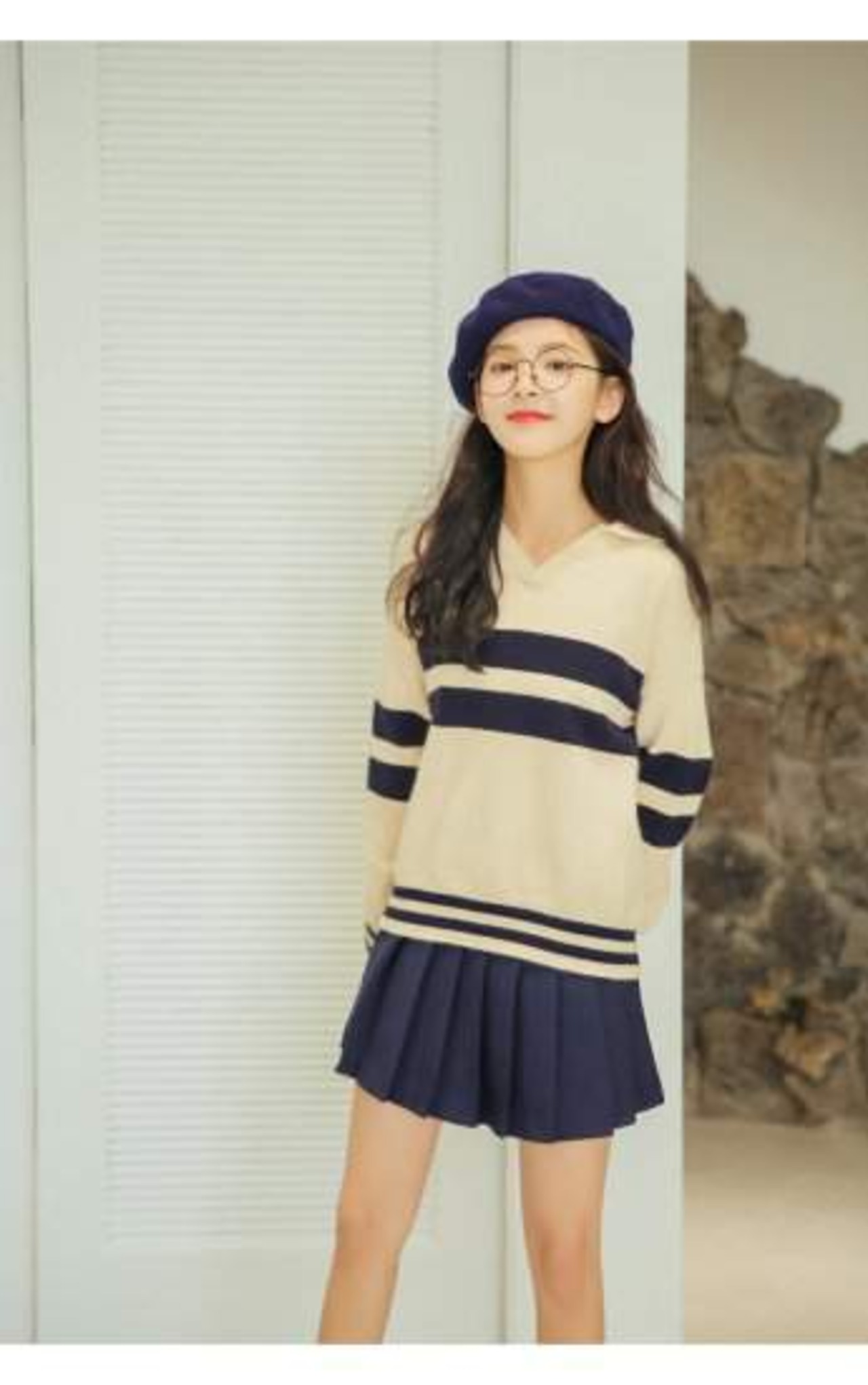 オルチャン韓国人気 春物Vネック ニットボーダー 襟付き カジュアル デート282