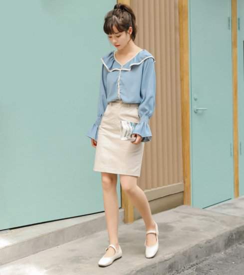 売れ筋 春物トレンド 袖フリル 襟フリル フェミニン ガーリー きれいめ フロントボタン 65
