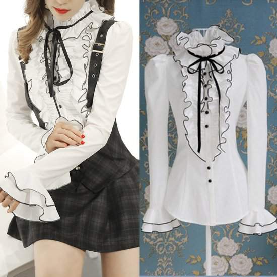 ボウタイ フリルハイネックディテール袖 エレガント ドール風 お嬢様262