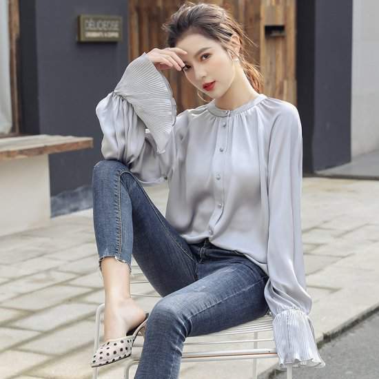 売れ筋 おすすめ 春物 袖フリル ボリューム袖 ベルスリーブ 上品 フェミニン エレガント342