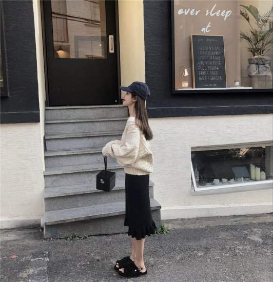 オルチャン韓国Vネック 服 セクシー オシャレ ニット アイボリー ベージュ オフショルダー 着回し セクシー 人気商品 762