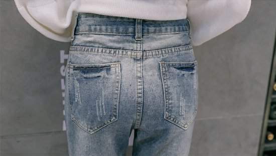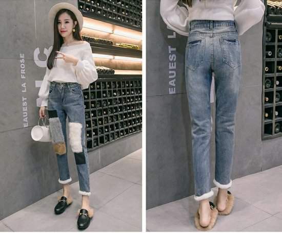 夏ストレートハイウエストパッチワーク 裏起毛 兎毛 古着風 178