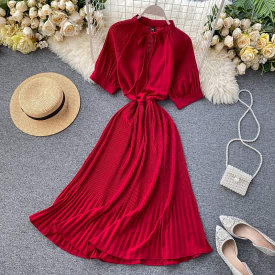プリーツ全色 春 ワンサイズシンプル Vネック リボンお嬢様風343