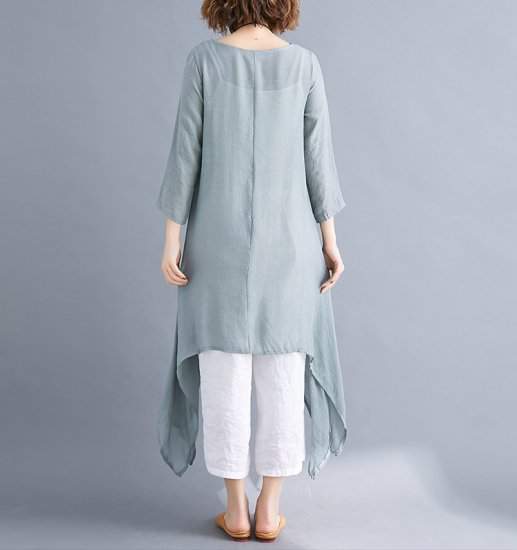 リネンワンピ Vネック エクリュ カラー Aライン ロングワンピ ルーズウエスト 部袖 ナチュラル シンプル812