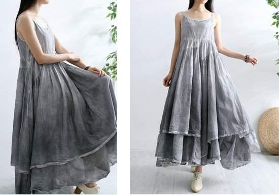 ドレス ロング リネン コットン Aライン オールインワン ウエストルーズ カラー666