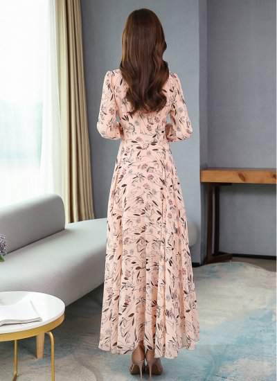 シフォンワンピパーティードレス 結婚式 二次会 ドレス マキシ丈 花柄エレガント お呼ばれ817