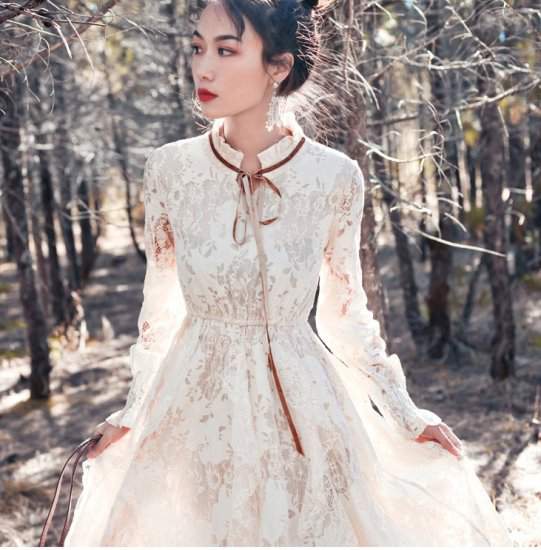 ドレス ロングエクリュカラー ベージュ ベルスリープ ふんわり ガーリー ネックリボン 826
