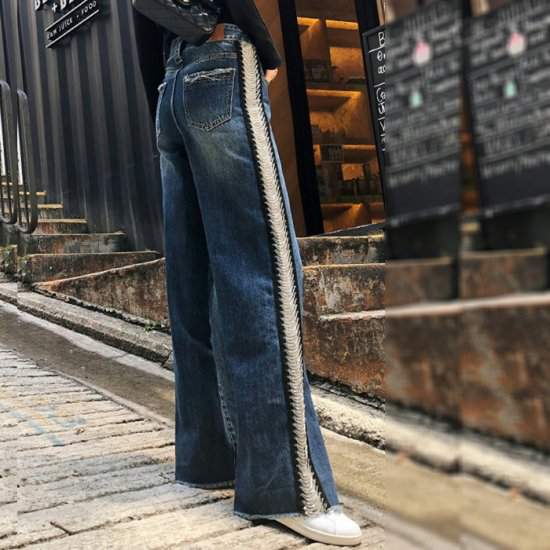 夏ストレートワイドゆったり 美脚 フリンジサイドライン142
