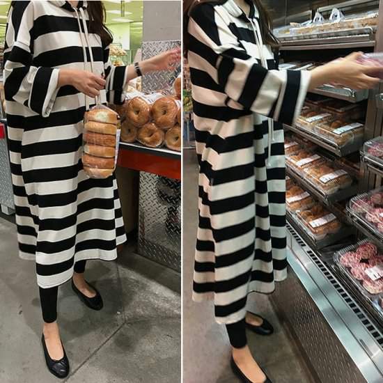 夏 ロングパーカー 夏 パーカーマキシロング 春夏 長め パーカー フード付き ラグランスリーブ ボーダー コットン 559