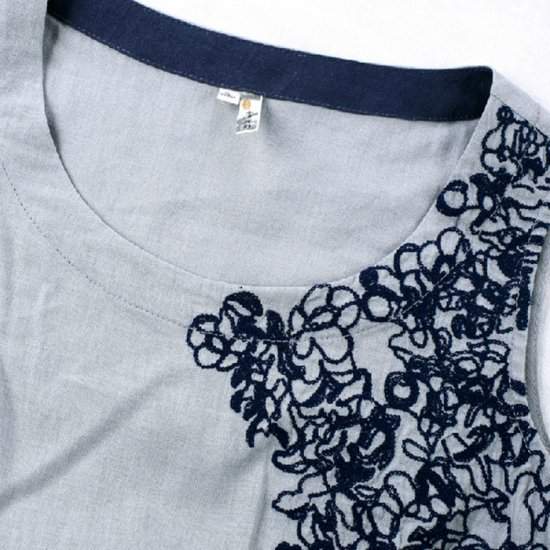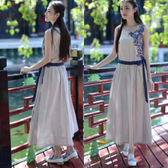 ロングリボン夏ブイネック プルオーバー 膝下丈 ミモレ丈 ラウンドネック ちょう結び パッチ刺繍レース ステッチ ライトグレー595