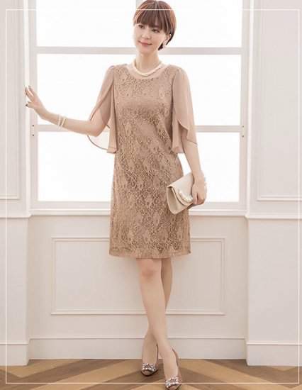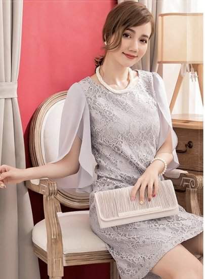 レース ドレス 春夏 シフォン上品清楚パーティードレス透け感シースルー レッドグレー ブルー ピンク80