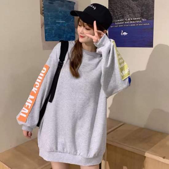 トレーナー ビックサイズ スエット韓国クールシンプルグレー388