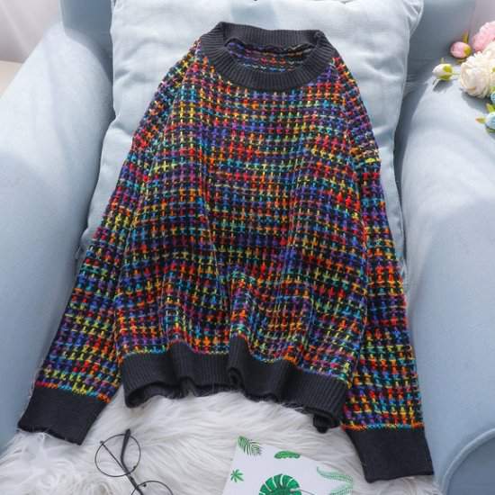オルチャン韓国 可愛い オーバーサイズ おしゃれ カジュアル きれいめカラフル ゆったり ふわふわ マルチカラー虹色 649