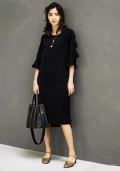 フォーマル 礼服 喪服 オールシーズン冠婚葬祭 シンプル上品膝下丈ミモレ丈フリル501