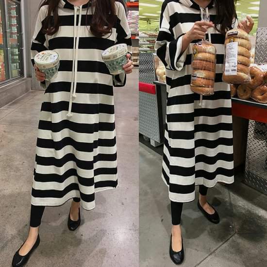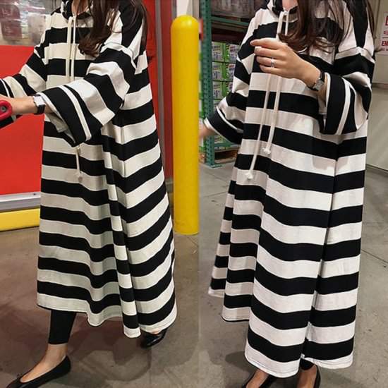 夏 ロングパーカー 夏 パーカーマキシロング 春夏 長め パーカー フード付き ラグランスリーブ ボーダー コットン 559